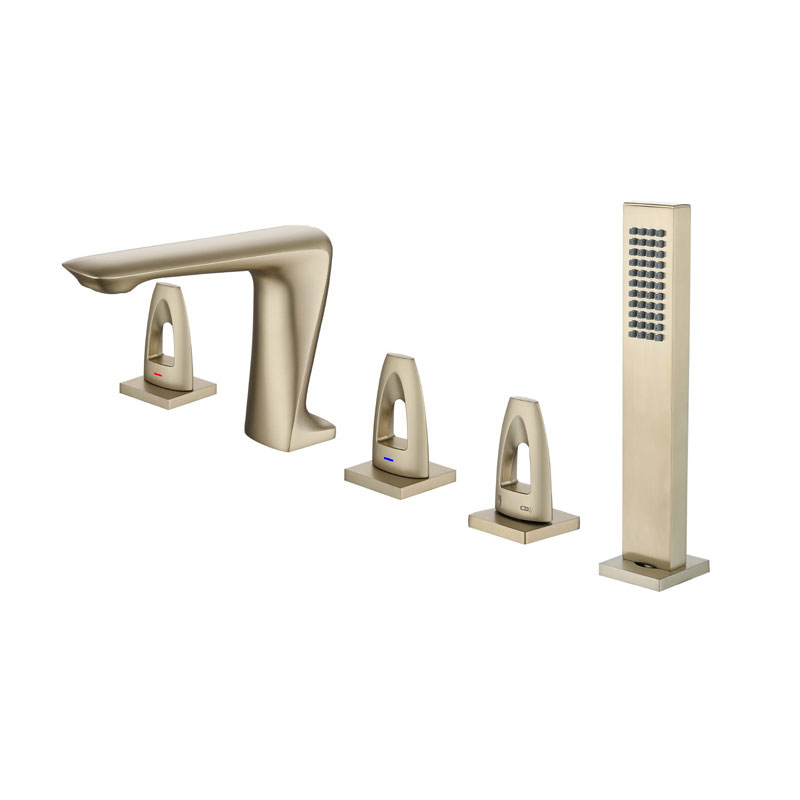 Luksuslik kuldne vann 5 auguga segisti eraldiseisev segisti kolme käepidemega vann duši põrand vannisegisti vannitoasegisti